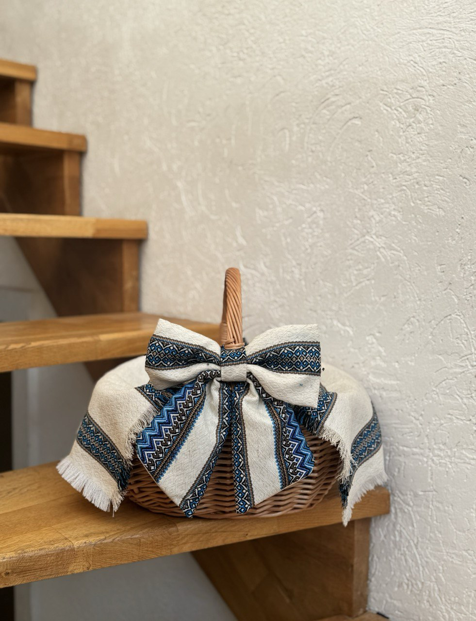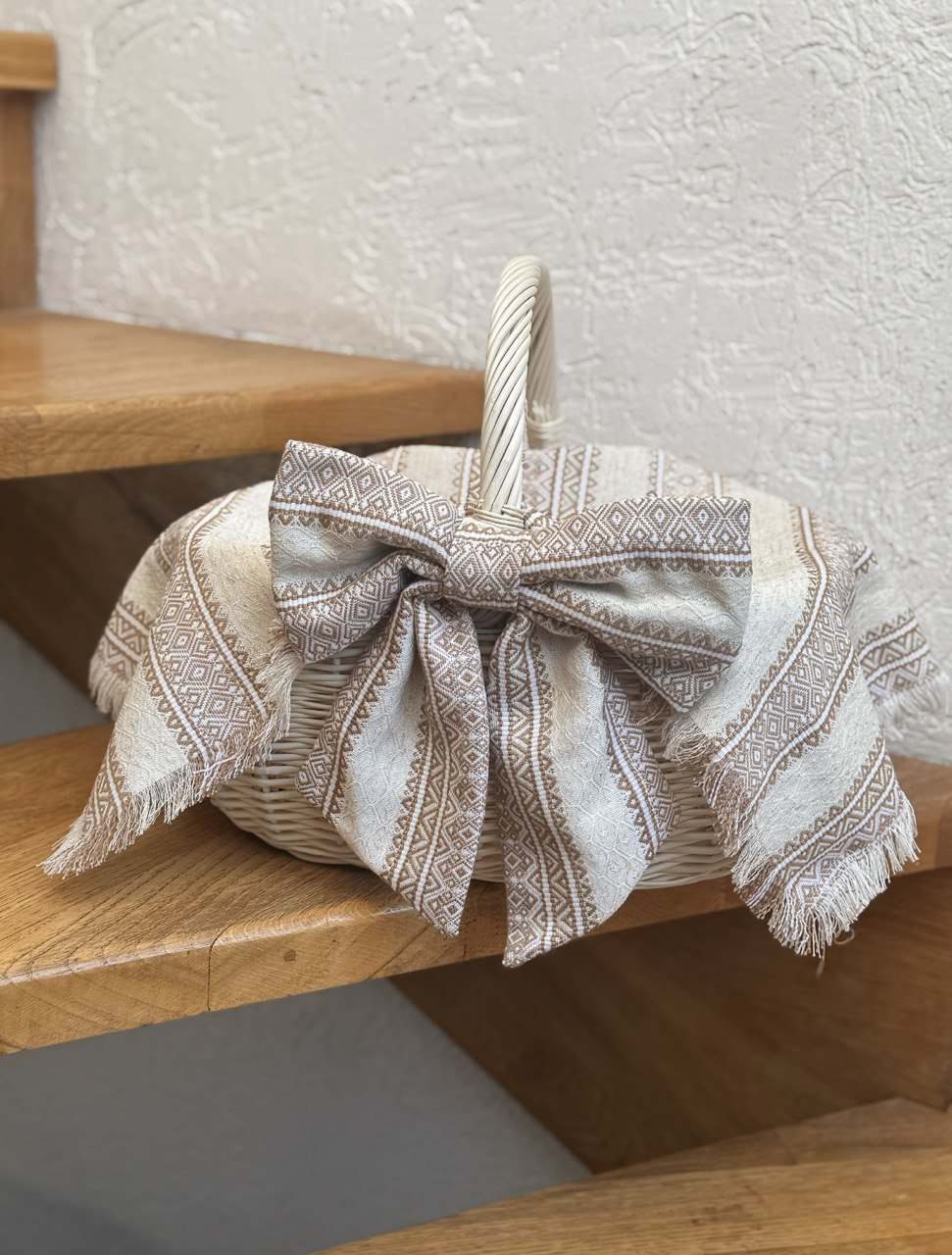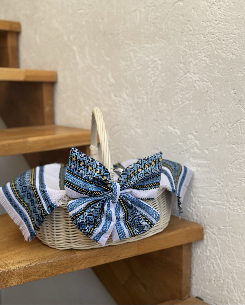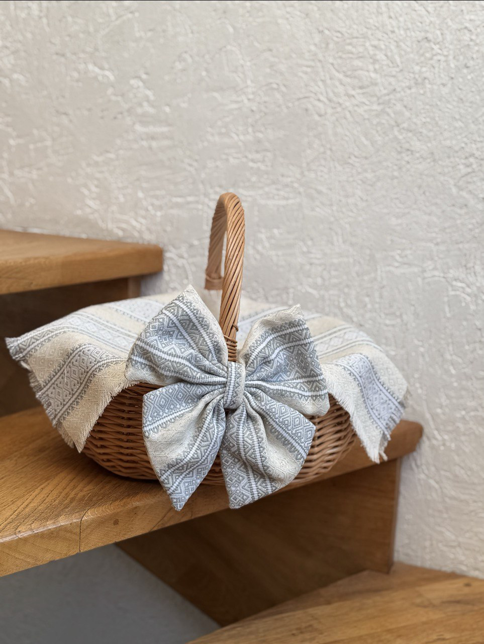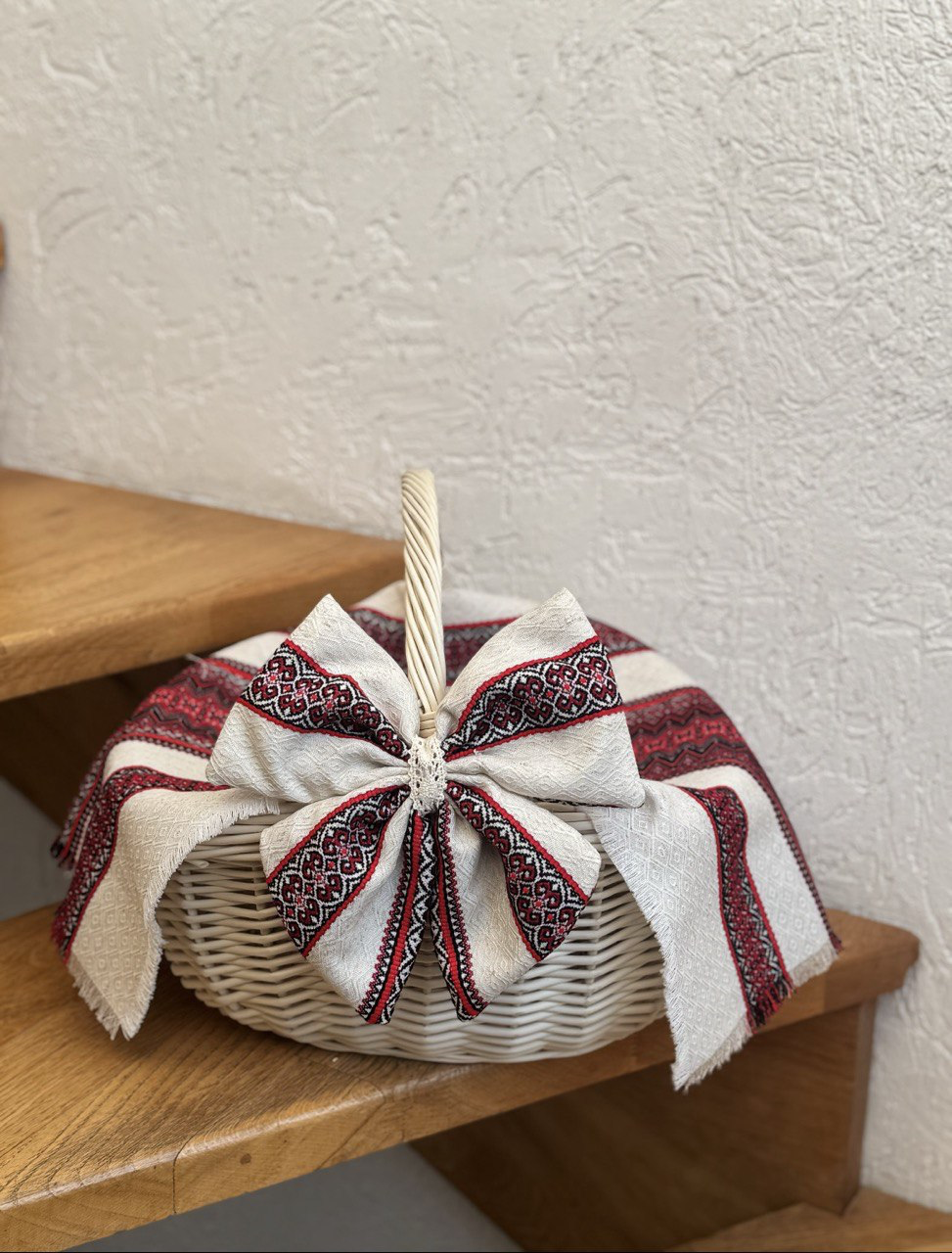 Наш бант та рушничок стане ідеальною прикрасою для вашого сімейного кошику, який гармонійно поєднається з вашим наповненням