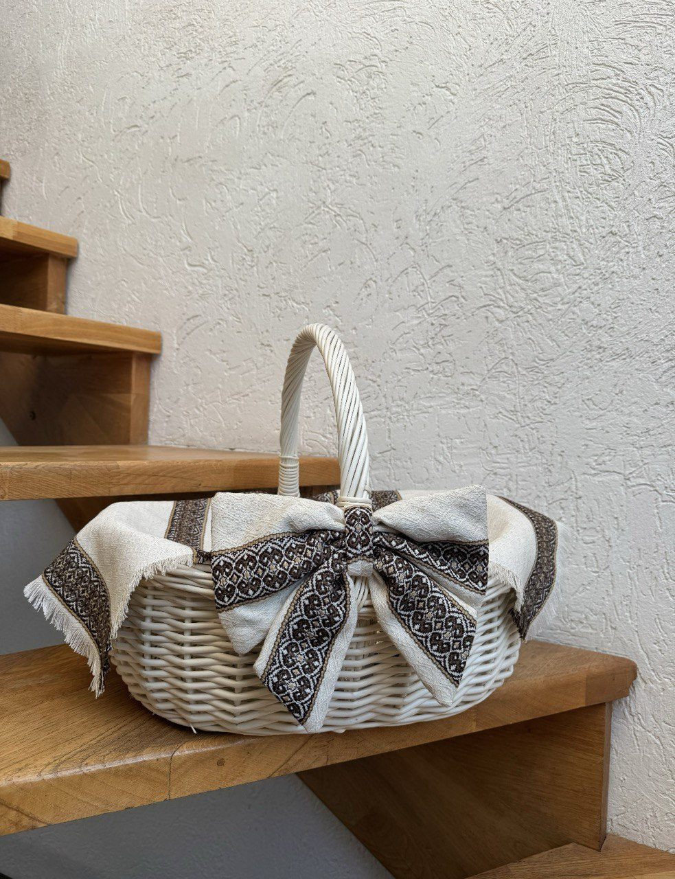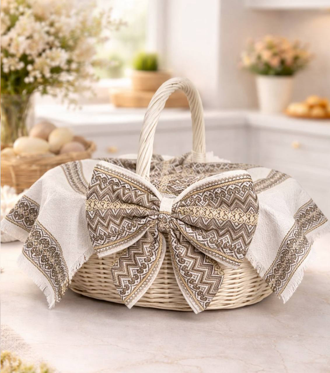Наш бант та рушничок стане ідеальною прикрасою для вашого сімейного кошику, який гармонійно поєднається з вашим наповненням